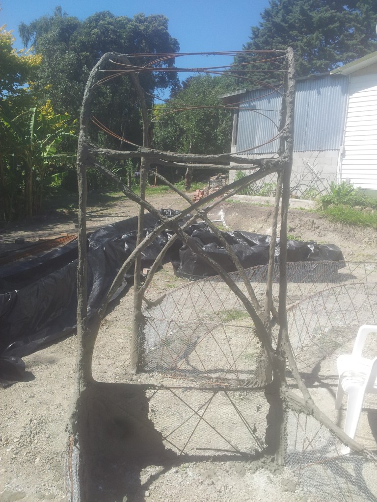 20130122_110031 Published February 7, 2013 at 2448 × 3264 in An Elven arched raised bed garden in Gisborne i folded and hand-bent – squished – 150mm wide roll of chickenwire around the arches.