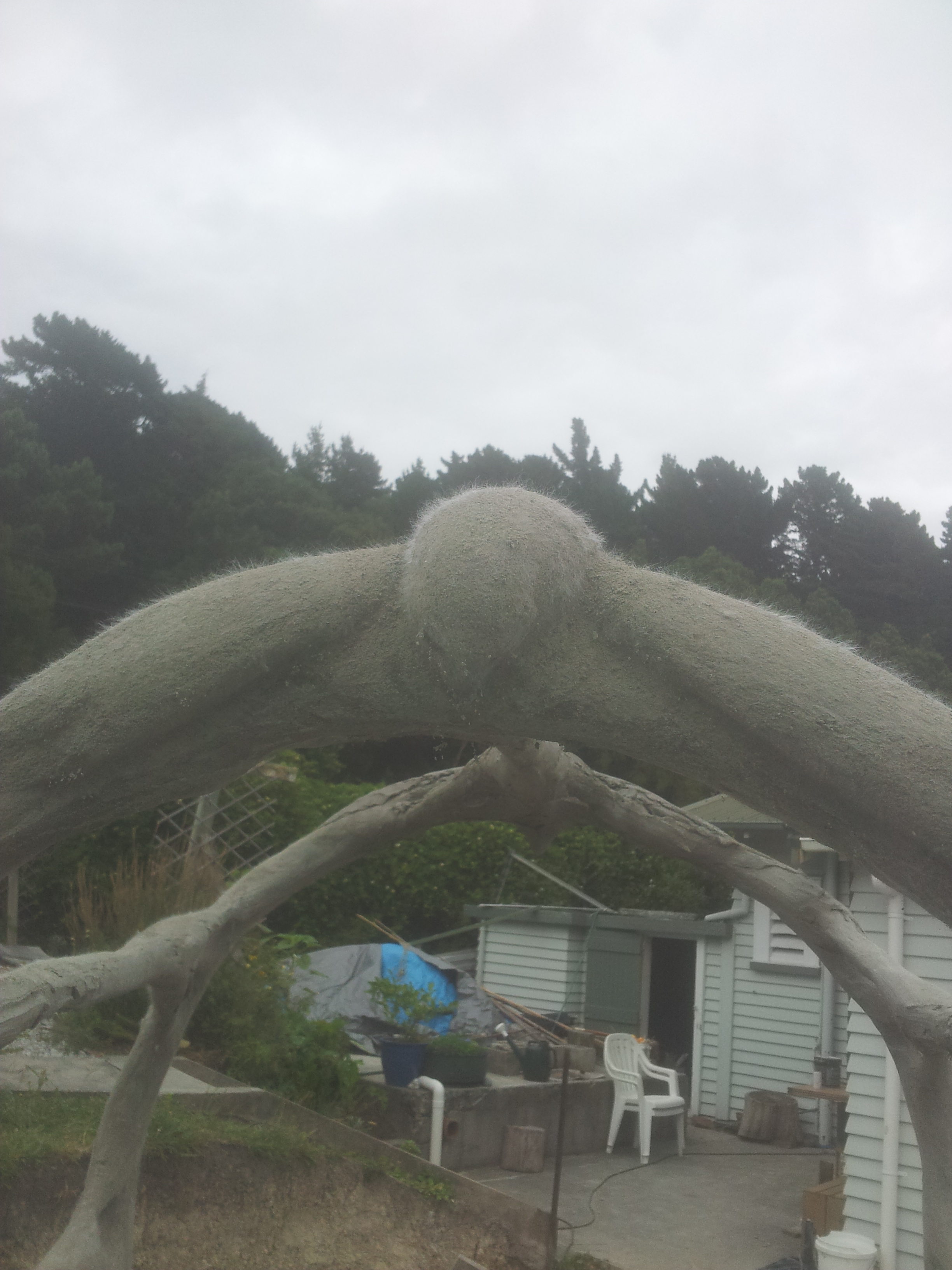 20130126_085226 Published February 7, 2013 at 2448 × 3264 in An Elven arched raised bed garden in Gisborne sanded bird shows furry fibre. Can be singed off or just painted over