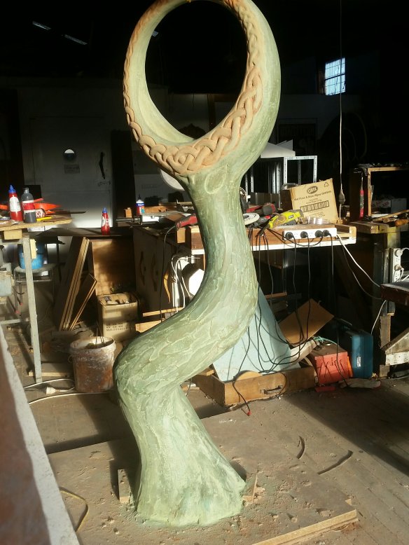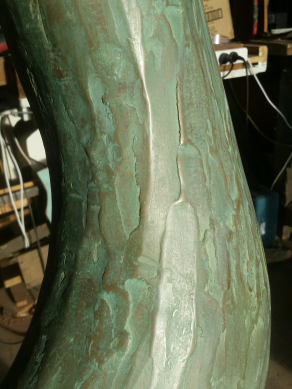 he spiral I’ve been chipping away at between other exciting works here at Dreamspace gallery and workshops www.dreamspace.nz is now pretty much like shiny aged bronze…a product I’ve tested from Peter Fell Ltd in Auckland, called C2 hardener and sealer for concrete, seems great…not a paint but a penetrating lithium silicate product which apparently replaces the calcium silicate in the concrete or plaster, making it denser harder and more polishable. ..