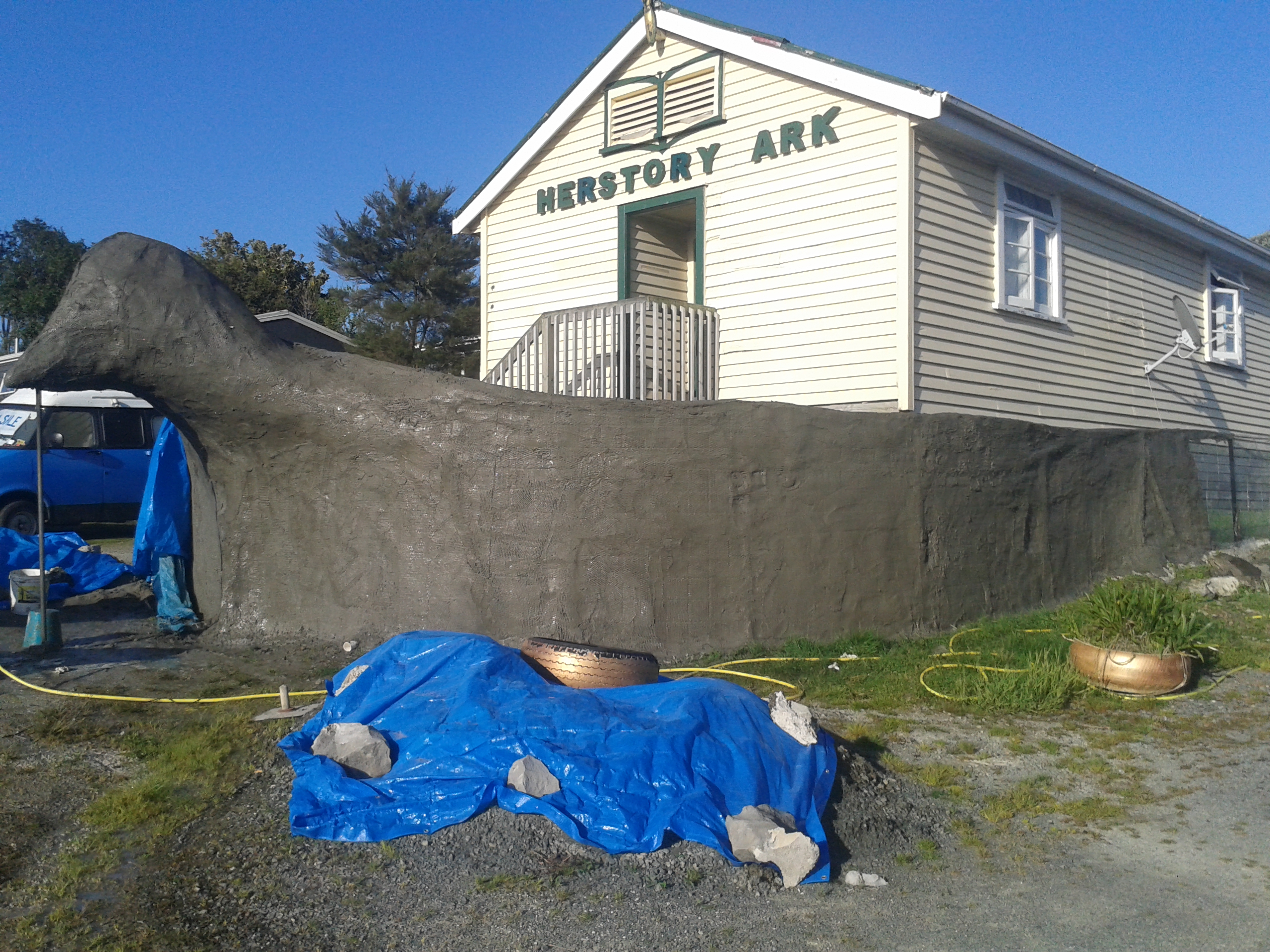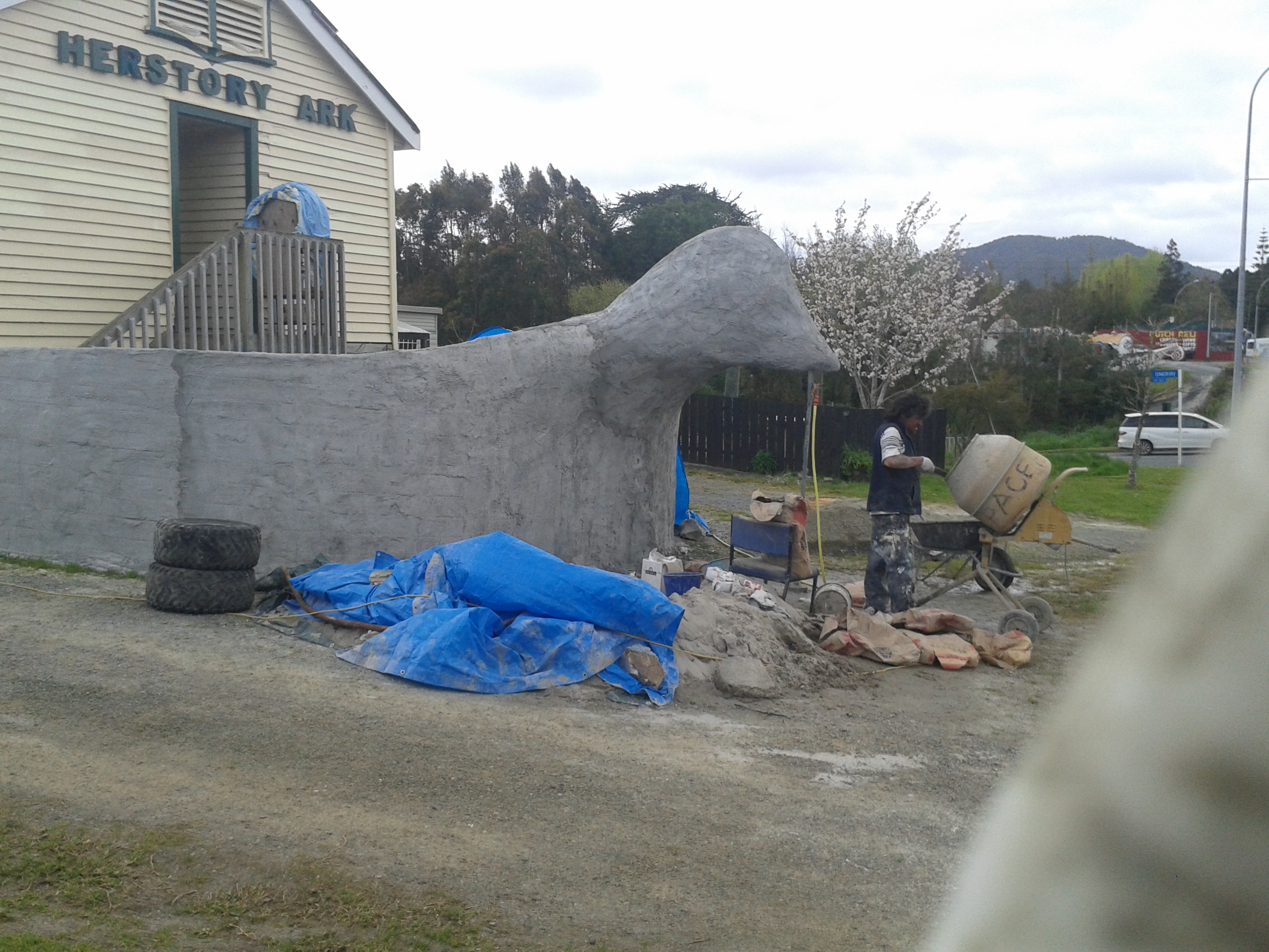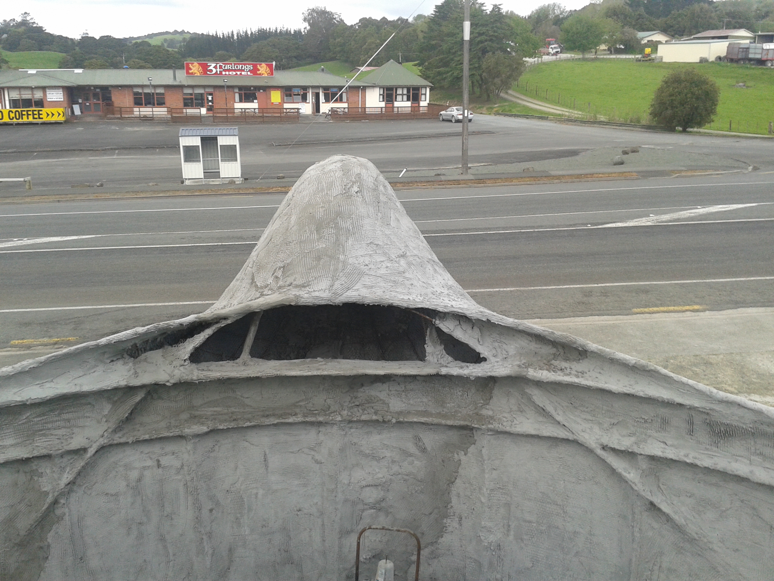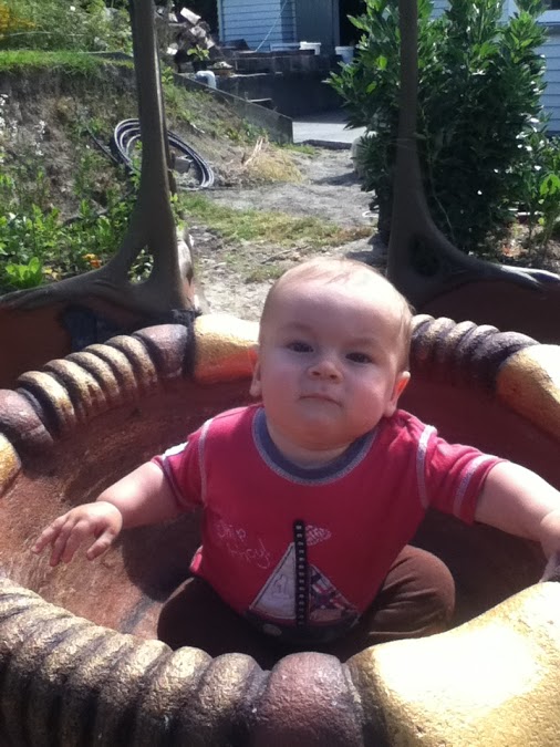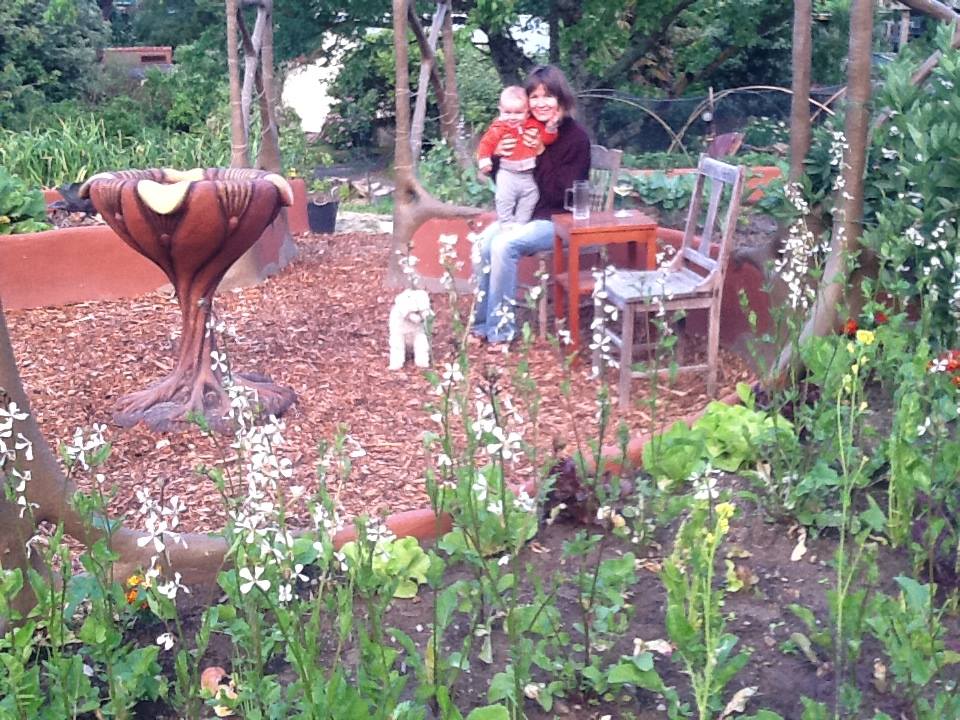A while ago now I did this – a long journey consulting with the parents of the young man who made this ‘sunwheel’ sculpture of radiating goat horns. They had it cast in bronze years later and wanted a support for it to spin in their garden as a memorial for their son. I’ll try to post the photos they took and we took in some sort of logical order…. The plaque I made by etching an aluminium plate then making a mould and casting it in white cement and bronzing it with copper sulphate, as I did with the pedestal and hands…